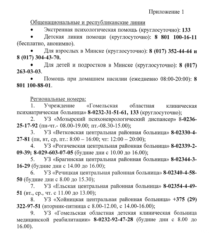 Телефон доверия учреждения «Гомельская областная клиническая психиатрическая больница»